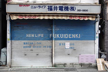 商店の全面にシャープのロゴ。