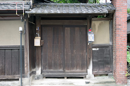 文京ふるさと歴史館の民家。門の左右に明治と森永、2つの木製牛乳箱が取り付けられています。