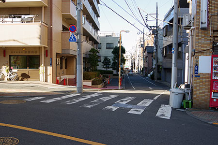 吉原交番の近く。おはぐろどぶ跡から道路に向かう場所が坂道になっています。