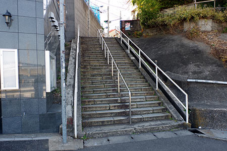 田端駅南口のすぐそばに、不動坂の石段があります。