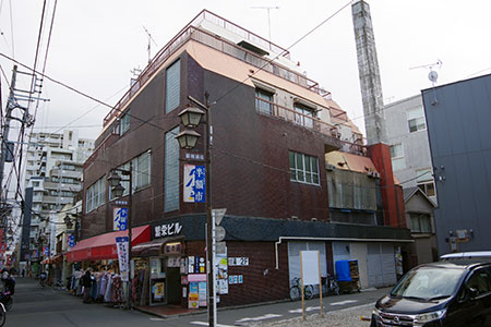 東武東上線大山駅の北側の踏切脇に、飲食ビルが建っています。