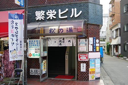 八王子駅から、西へ約1kmの小門町(おかどまち)にある松の湯。