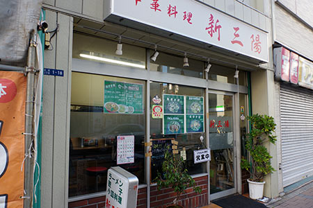 谷中5丁目の交差点に建つ中華料理「珎々亭」。