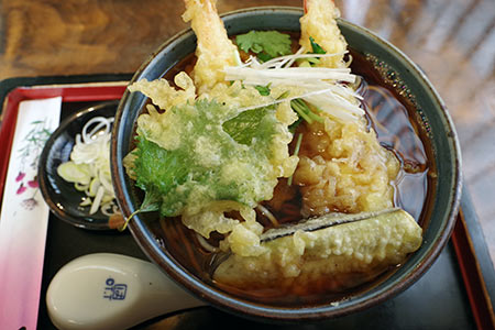 戸倉駅の駅そば「かかし」は、本がつおと昆布からだしを取るつゆが自慢です。化学調味料は一切使っていません。*1