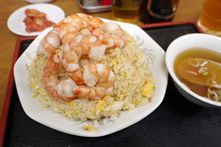 海老チャーハンを注文。海老の大きさと量が凄いです。