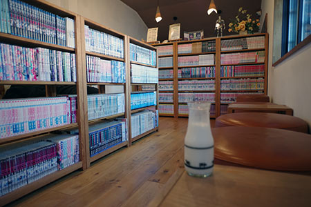 2階は休憩室。壁面を漫画が埋めつくしています。