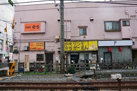 東武東上線大山駅の北側の踏切脇に、飲食ビルが建っています。