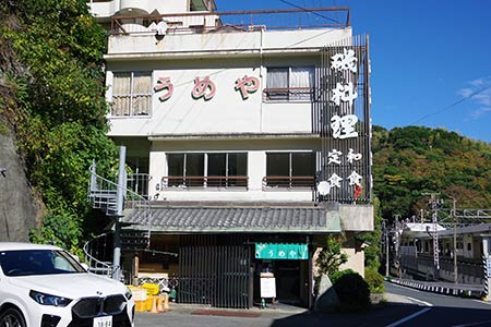 伊豆熱川駅を下車すると、東へ下る道が続き、その先が伊豆熱川の温泉街です。