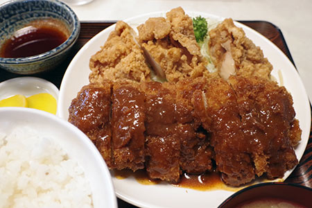 通常のメニューとは別に、カラアゲとチキンカツ、というようなコンビメニューがあって、これがもの凄いボリュームです。