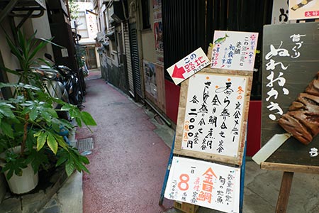 L字型の路地の角※1 にある大衆割烹。看板メニューは、金目鯛煮付定食です。