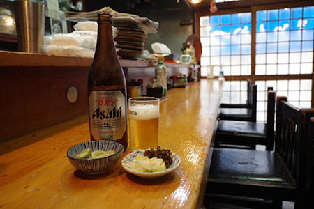 天ぷらそばとビールを注文。