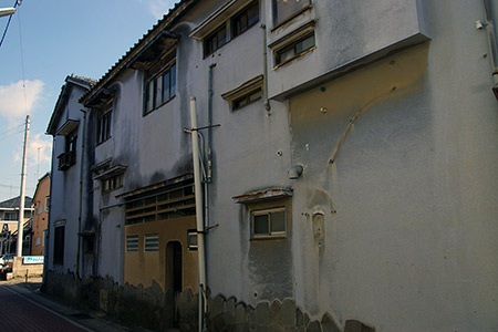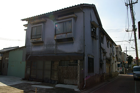 横山町の南側に建つ「料亭かねこや」の建物。1970年の住宅地図を見ると、料亭かねこや、料亭清風、料亭花園、料亭富久家、料亭山水、割烹旅館立花家、などがあり、この頃は、花街の名残と思われる料亭などが残っていました。