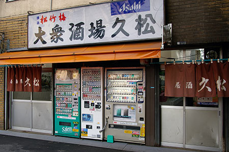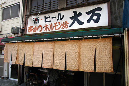 通りの方へ回りこんだところにある大衆酒場。古い看板が特徴的です。立ち飲みやに近い雰囲気があります。