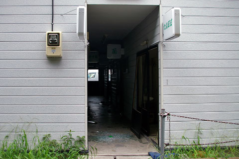 もう1軒あったプレハブの建物。建物の内部には窓ガラスが散乱しています。