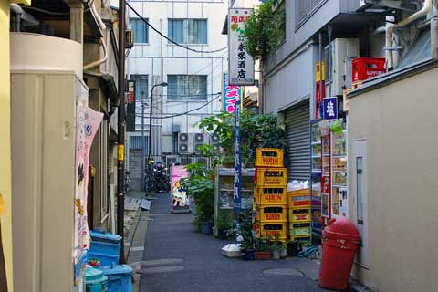 料理屋の隣に小さな横丁の入口があります。