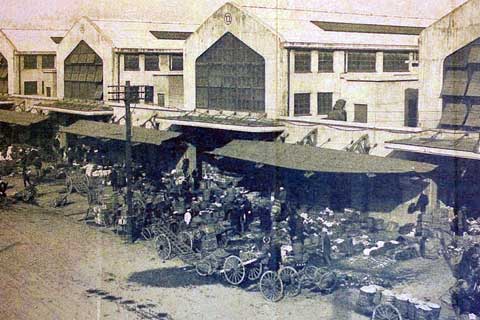 弁天町商店街の交差点の角にある八百屋。建物は、以前、遊郭であったと言われています。