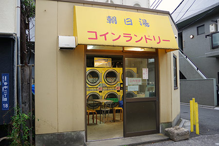 谷中2丁目にある朝日湯。コインランドリー併設の銭湯です。