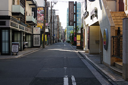 銭湯の若松湯※1 の南側に、この字型の小さな飲食街があります。
