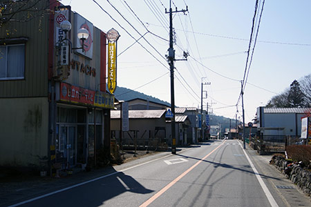 伊豆熱川温泉の射的が2軒並ぶ通り※1 から丸幸商店(写真中央)のある坂道を登る途中。