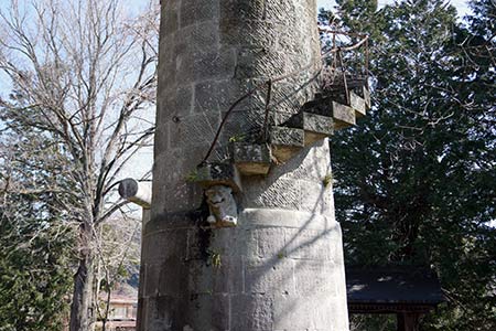らせん階段は台座の途中から始まっています。台座は後から付け加えられたものなのかもしれません。