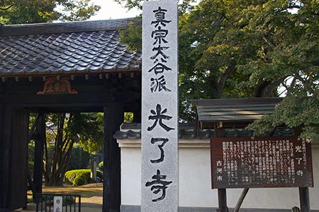 中田のバス停から10分ほど、北に歩いたところに、光了寺があります。