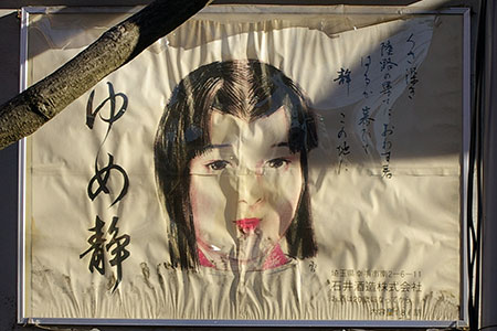 石原ひとみの似顔絵?を使った酒屋の広告があります。