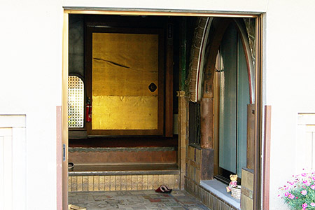 山梨英和学院の生徒達は昔から流行に敏感で、明治33年(1900年)には、ほぼ全員がはかまを着用していたそうです。はかまを胸高くはいて歩く姿はそのころの甲府市内でも人目をひく存在でした。*1